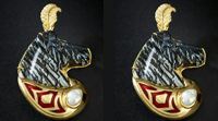 Elizabeth’s approach to design is as unique and avant-garde as the jewels themselves. She combines different elements in her work which she chooses for their individual beauty; exquisite stones, ancient bronzes, beautiful carvings, baroque pearls, in fact anything where the shape and colour inspire her. She uses these as an artist would use their palette, combining them with brightly coloured enamel and detailed goldwork to create individual and highly personal jewels.